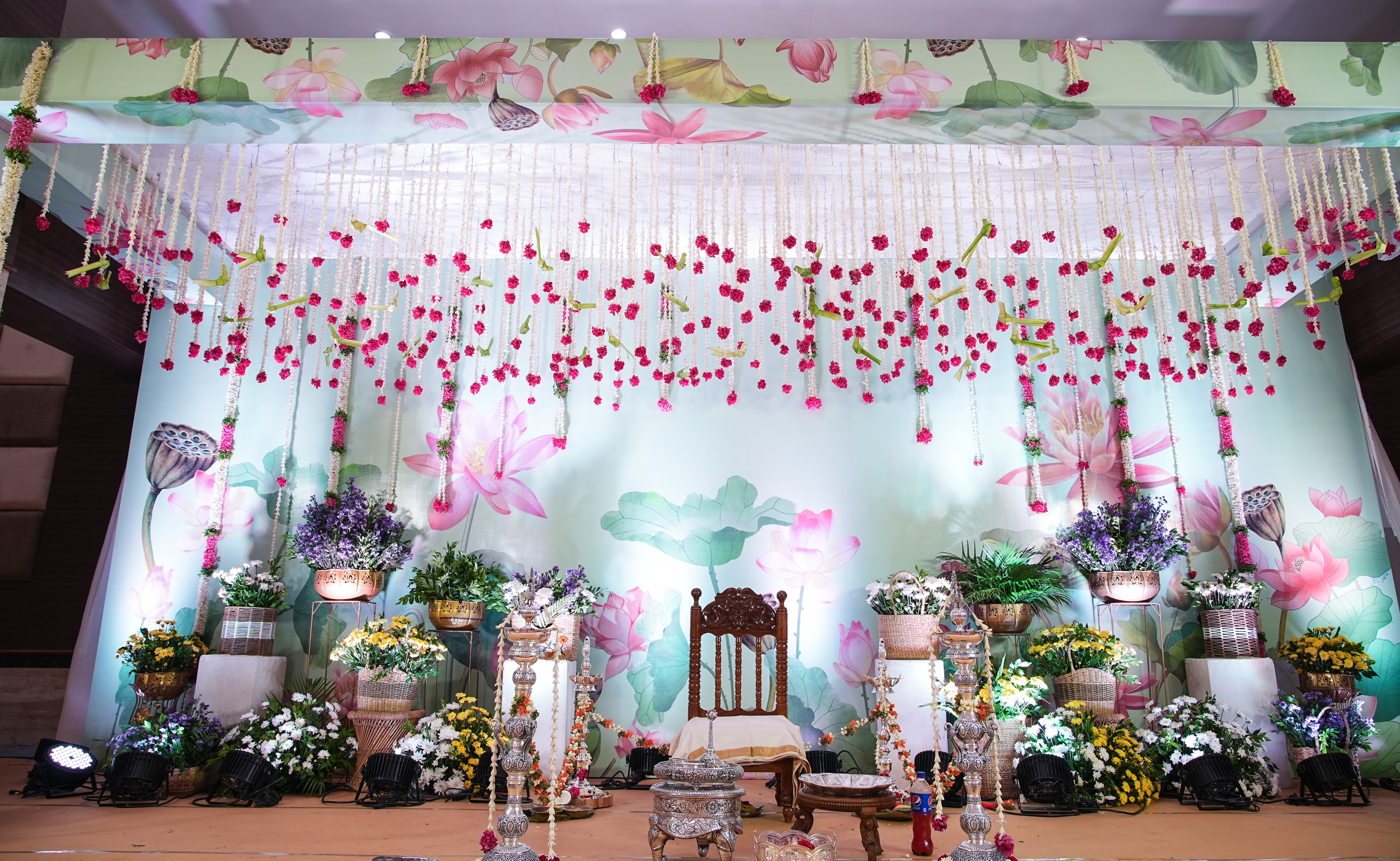 Fresh flowers add a delicate and refreshing touch. Use soft blooms like roses, tulips, and baby's breath in coordinating shades. These can decorate tables, chairs, welcome boards, or be part of a stunning floral arch to make the event feel dreamy and elegant.